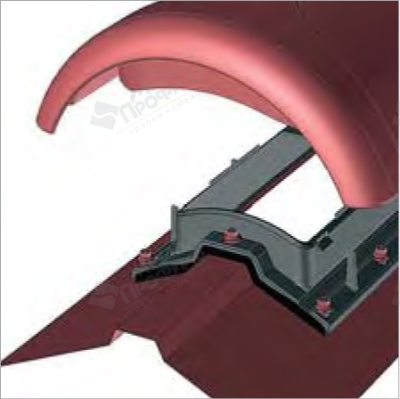 Уникальная конструкция, состоящая из двух конструкционных элементов, позволяет установить Pelti KTV/harja как на круглый, так на П-образный (120х120) и треугольный конек.