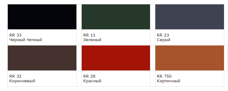 - Производится в 6 цветах: RR 11; RR 23; RR 28;RR 33; RR 32; RR 750